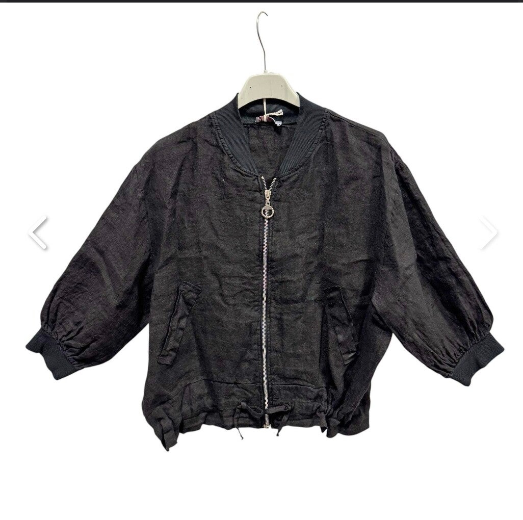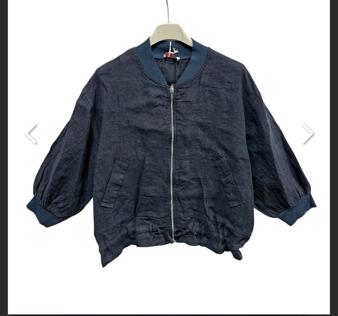 Korte linnen bomberjasje met ritssluiting